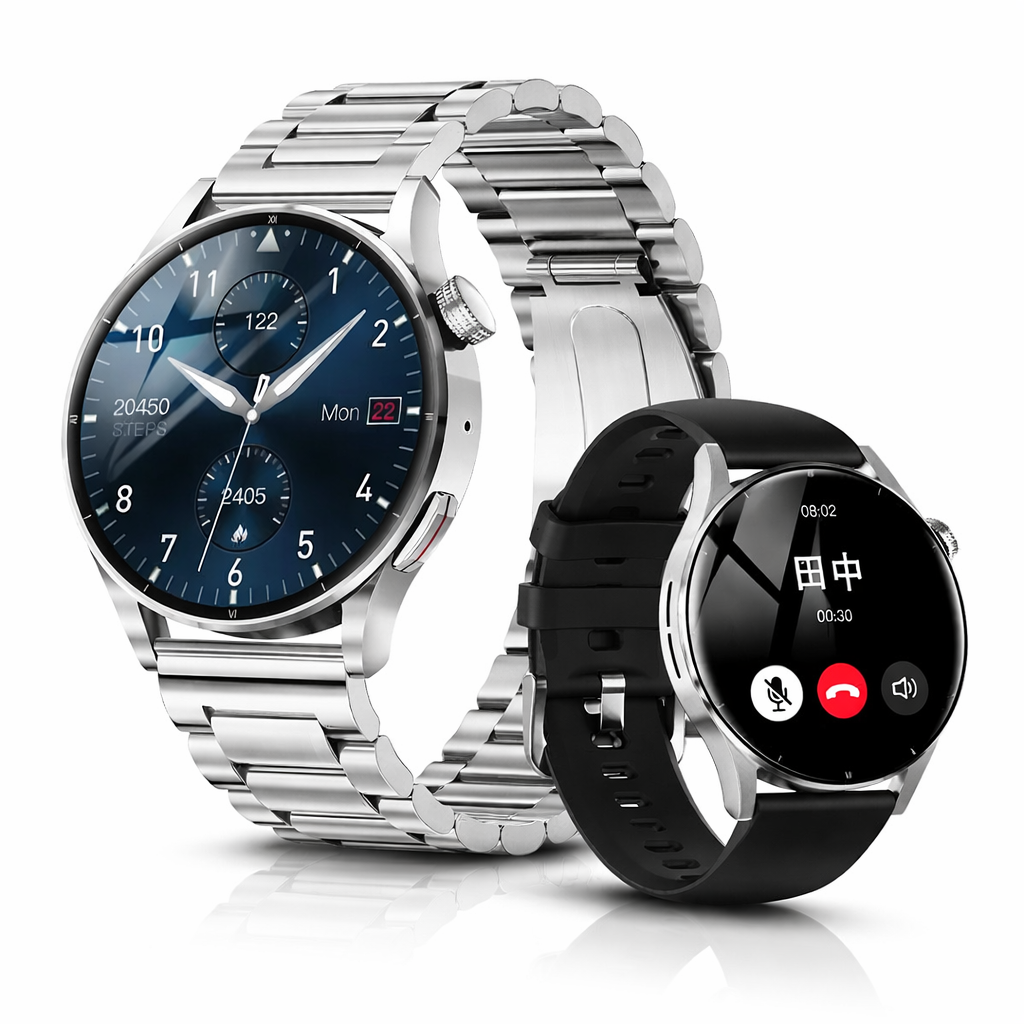 サファイアガラスを採用した1.43インチのAMOLEDディスプレイは、鮮やかな色彩と高い視認性を実現。メタルフレームと交換可能なベルトにより、ビジネスシーンからカジュアルまで幅広く対応します。
