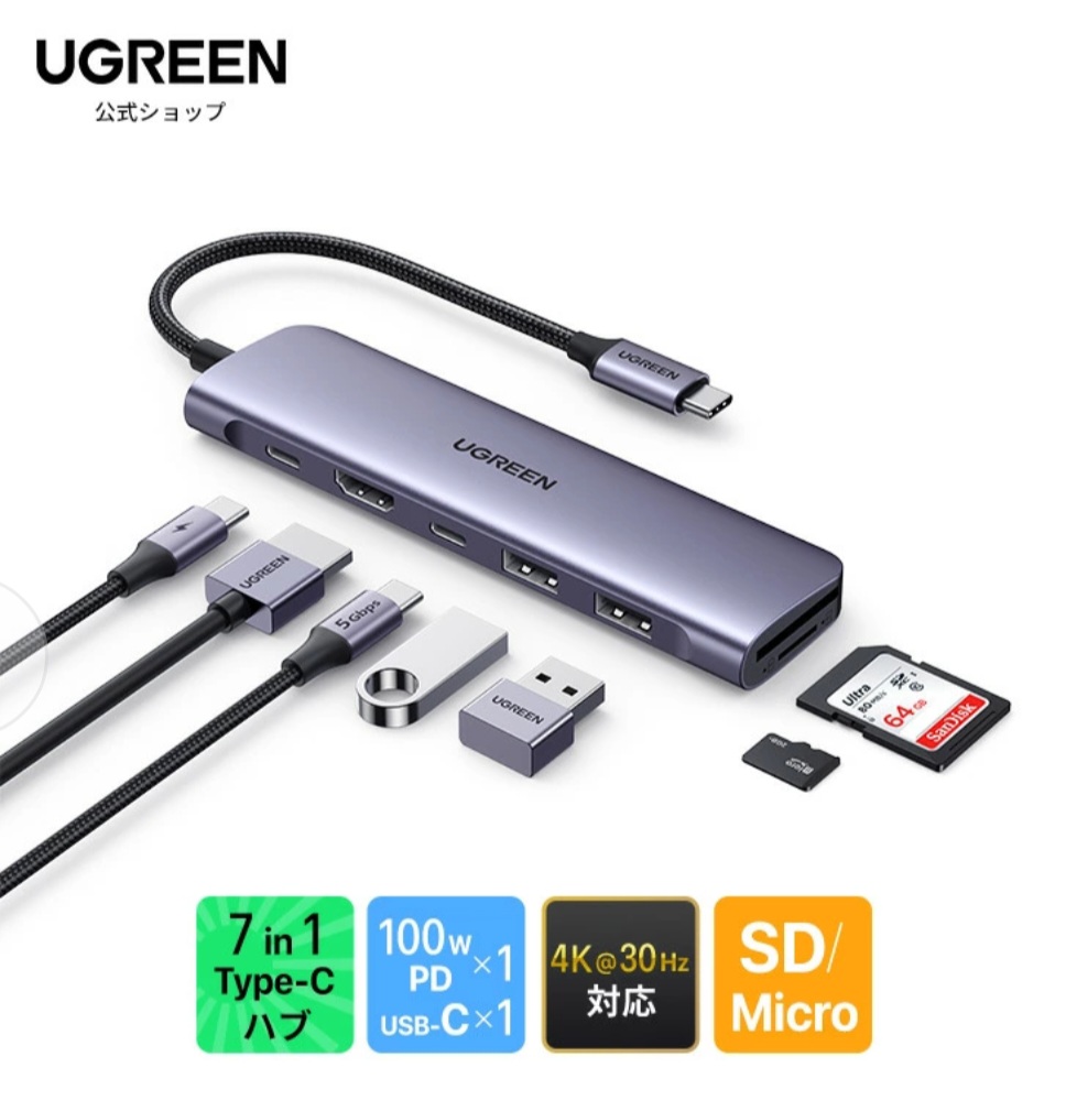 #UGREEN #USBCハブ #PC周辺機器 #ガジェット #ノートPC #4KHDMI #PD充電 #USB3.2 #SDカードスロット