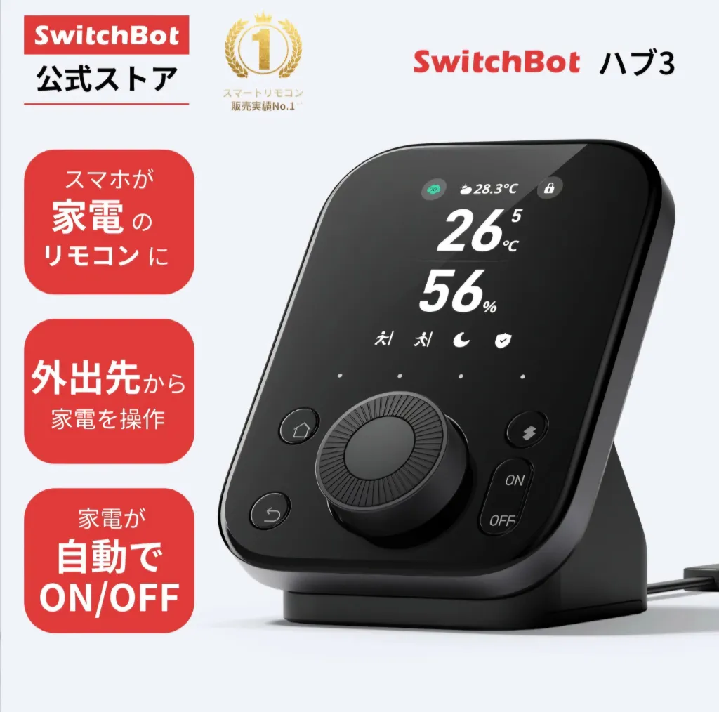 SwitchBot ハブ3は、リモコンで操作するあらゆる家電をスマホや音声で一括コントロールできる次世代スマートリモコンです。