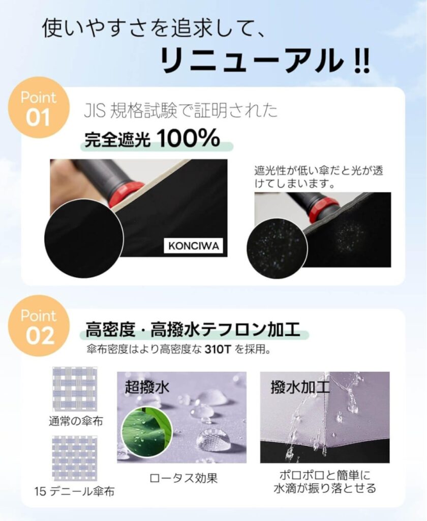 #日傘 #折りたたみ日傘 #完全遮光 #UVカット #遮熱対策 #暑さ対策 #紫外線対策 #軽量日傘 #晴雨兼用 #便利グッズ