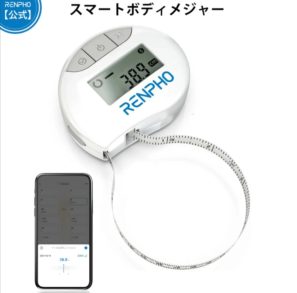 RENPHO 公式 スマートボディメジャー 巻尺 自動巻取り式 1.5M スマホ連動 デジタル 両面目盛 巻き尺 まきじゃく 無料専用アプリ Renpho Health Bluetooth対応 身体測定 計測 定規 裁縫用 手芸用 妊娠 マタニティ グッズ 赤ちゃん 150cm レンフォ プレゼント ギフト
