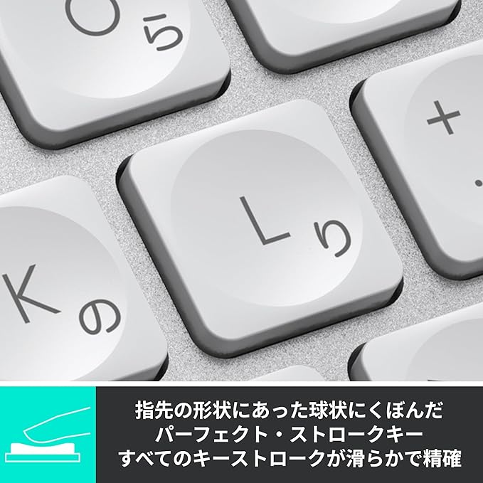 - 丸みのあるキー形状で指先がフィットしやすい