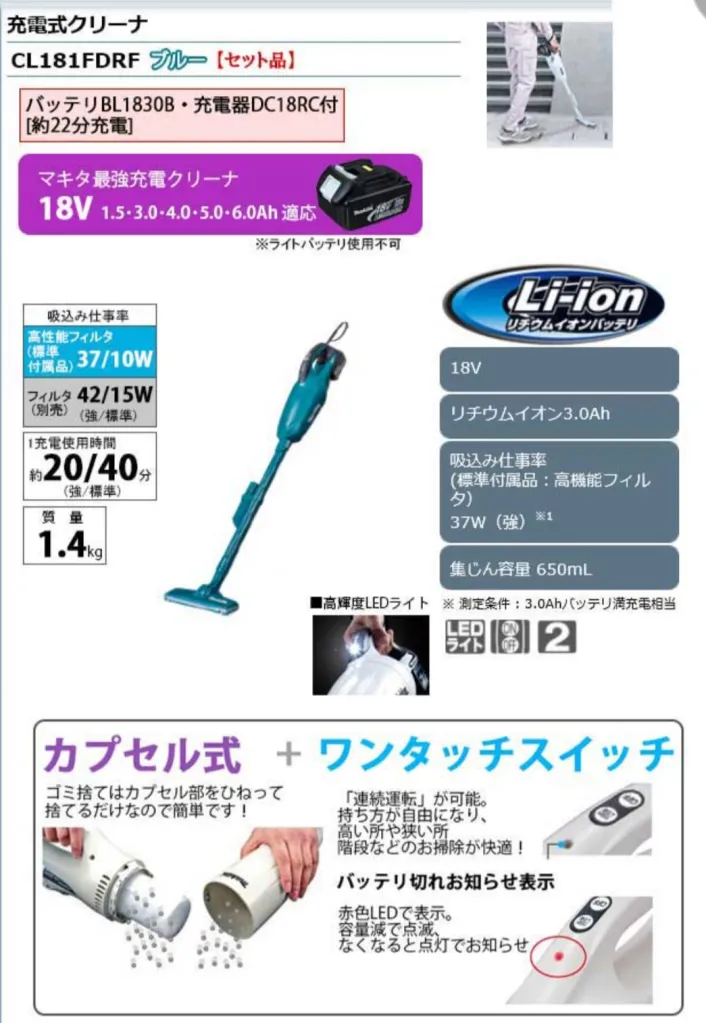 「毎日の掃除が面倒…」という悩みを解消してくれたのが、このマキタ CL181FDRFでした。