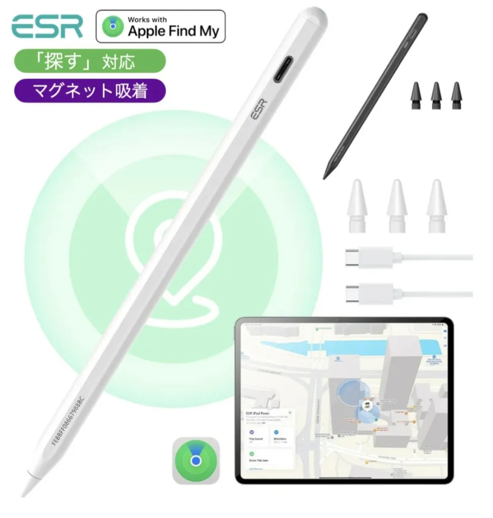ESR iPad スタイラスペン(Find My対応)は、