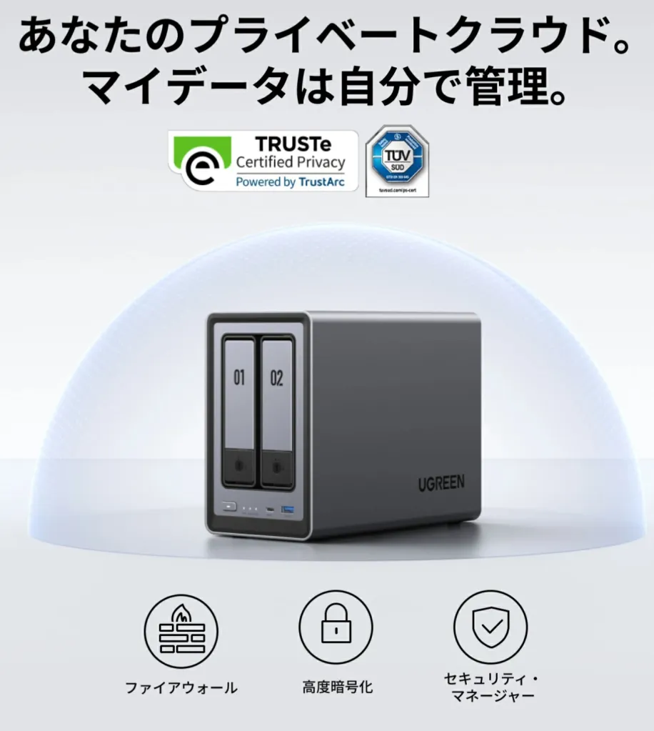 UGREEN NASyncは、個人でも簡単に使える高性能なNAS(ネットワークアタッチトストレージ)です。