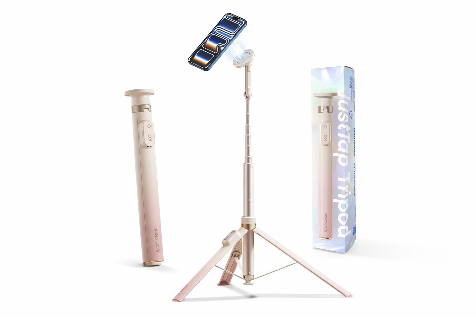 KraftGeek スマホ三脚 MagSafe対応|JustTap自動展開・最大高さ167cm(表記例)