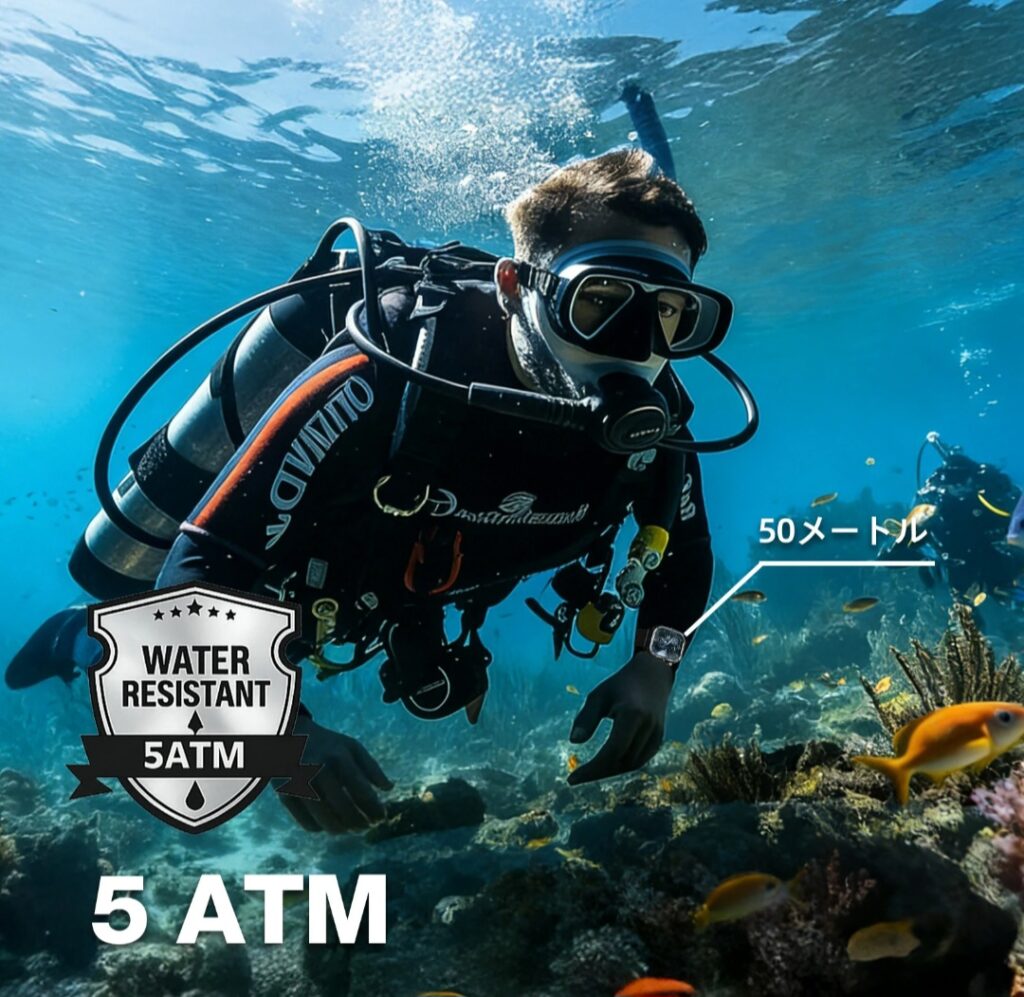 - 5ATM防水・IP68防塵防水で普段使いしやすい