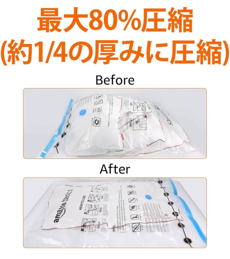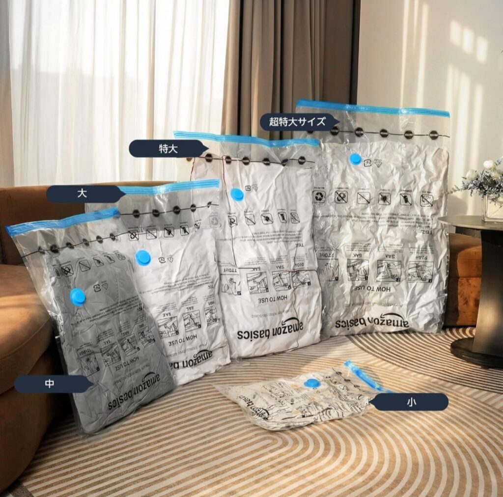 Amazonベーシック 真空衣類圧縮袋レビュー|掃除機不要で旅行も衣替えもラクになる収納便利グッズ