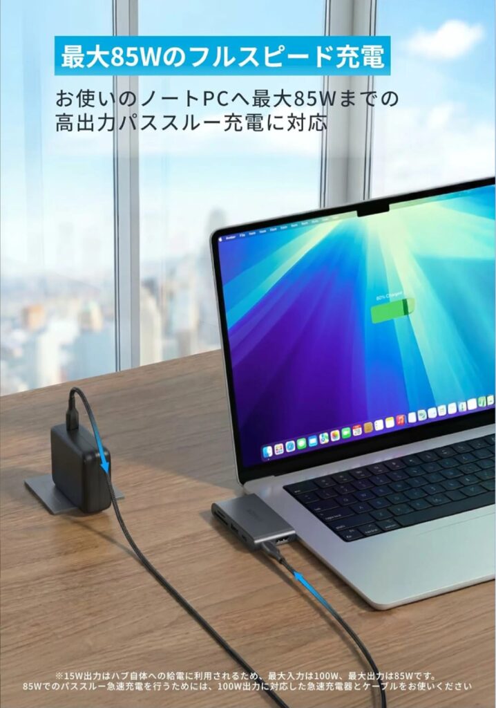 - 85Wパススルー対応で、充電しながら使いやすいのが便利です