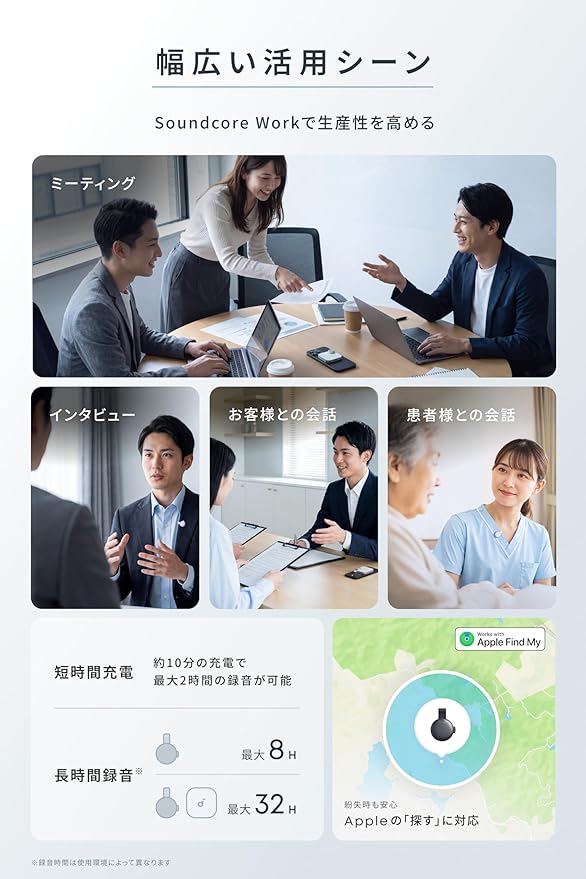 そんな人にかなり相性がいいのが、Anker Soundcore Workです。 身につけて録音しやすいウェアラブル型で、文字起こしや要約までまとめてサポートしてくれるので、仕事の流れをかなり軽くしてくれます。
