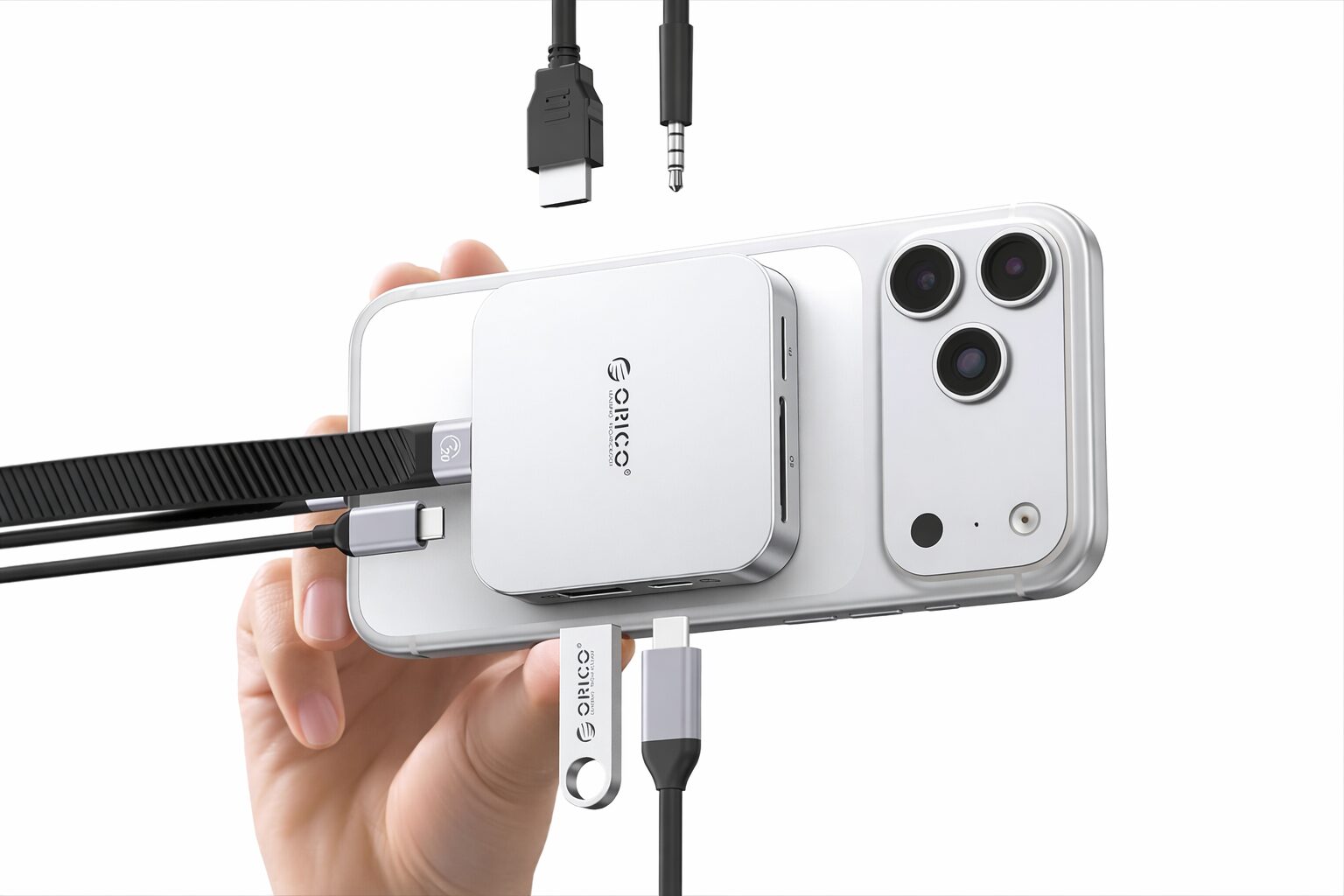 特に面白いのは、マグネット式でスマホや対応デバイスに固定しやすい点です。一般的なハブはぶら下がりやすく、スマホ撮影や外出先の作業では少し扱いにくい場面がありますが、このタイプは固定感があるので取り回しがしやすいです。