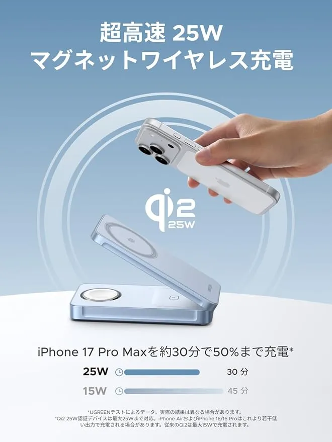 UGREEN MagFlow 3-in-1 25W Qi2 ワイヤレス充電器 価格:13,990円 |