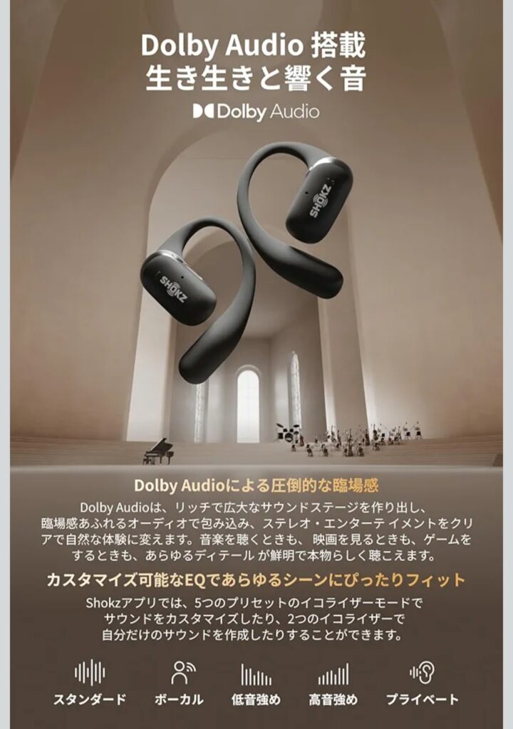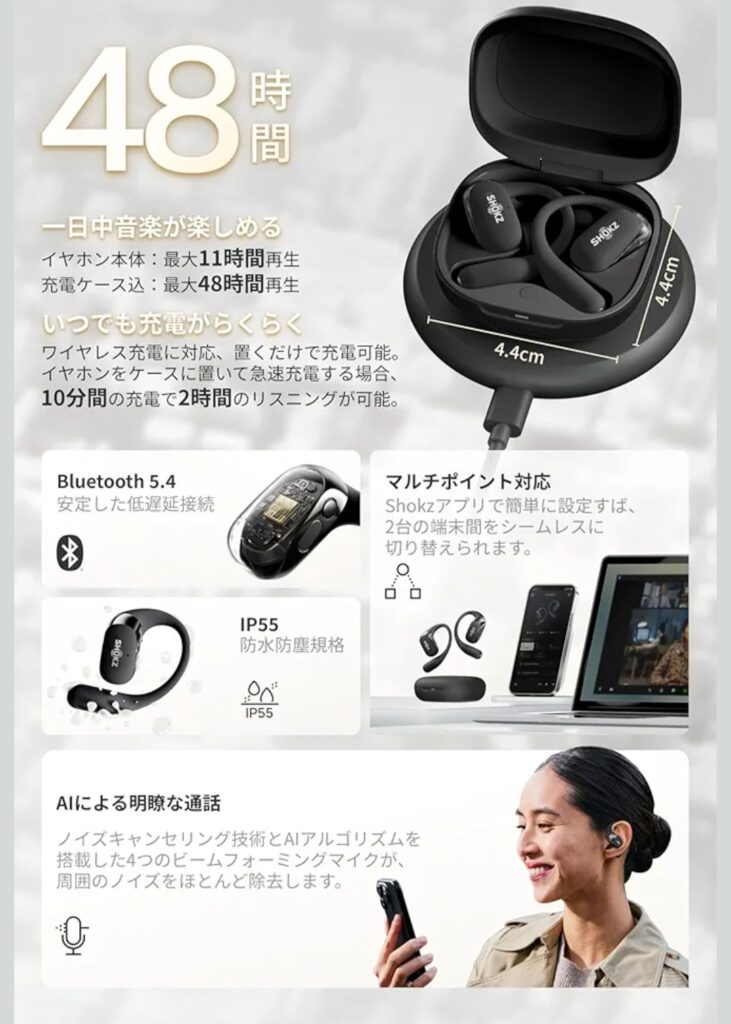 Shokz OpenFit 2+は、 「快適さ」「安全性」「音質」のバランスが非常に良いモデルです。