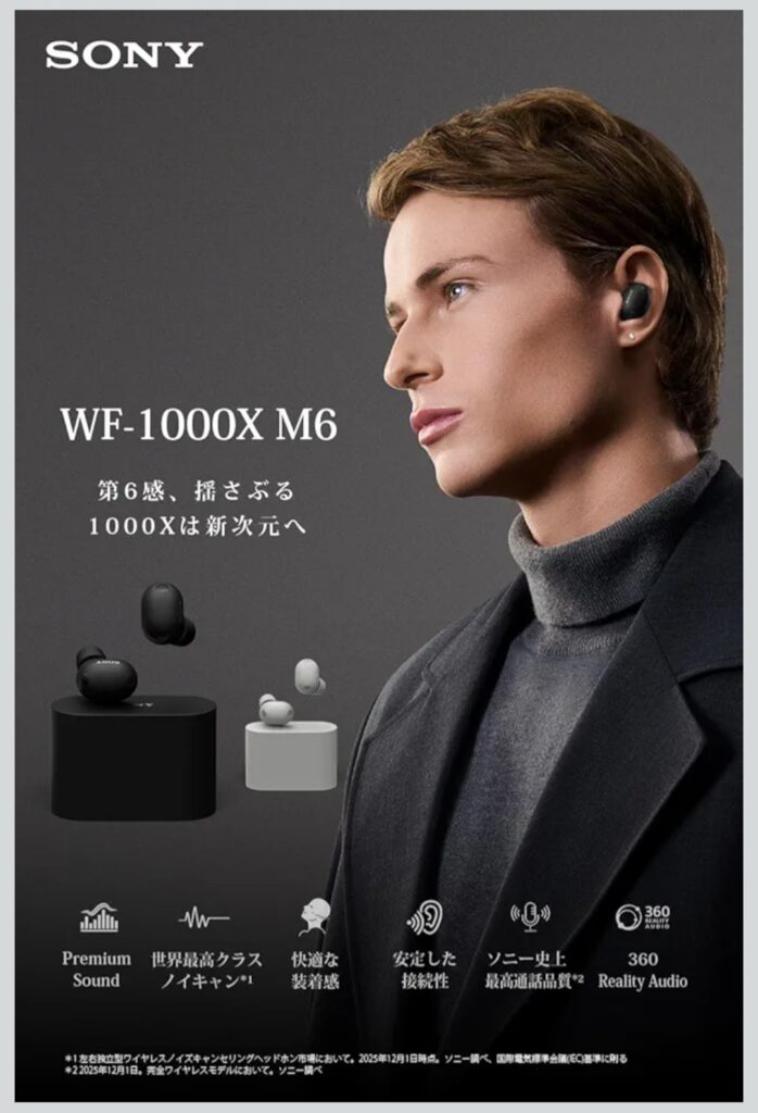 WF-1000XM6は、 「ノイキャン・音質・機能」すべてにおいて高水準なモデルです。