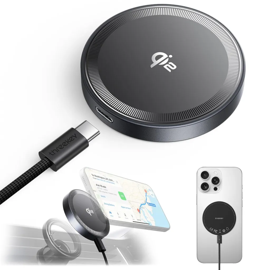 THREEKEY ワイヤレス充電器【Qi2 PSE 公式認証】15W超低温 MagSafe充電器 両面マグネット式…